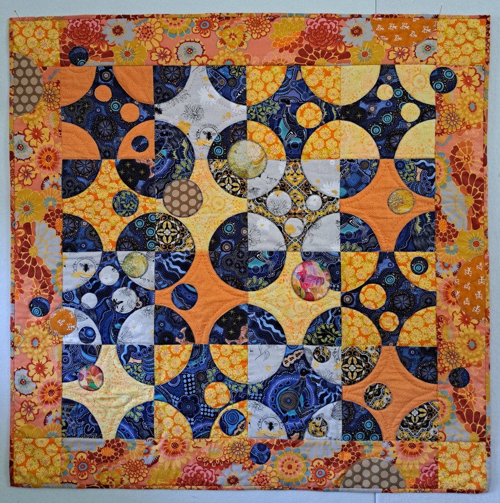 I’m also THRILLED that we had a 3-way tie for FIRST PLACE!!! My quilt was one of those three!!!! There were almost 20 people that had a quilt in the challenge, Thimble Pleasures Quilt Guild. The name of the Challenge was Circles, Curves and Colors. We were given a variety of circles cut from a wide variety of styles of fabric. A bit challenging to work them together. I did not change the circle sizes, I used ALL of them as given. I should have taken photos of all the quilts, there was such a great variety of techniques used.