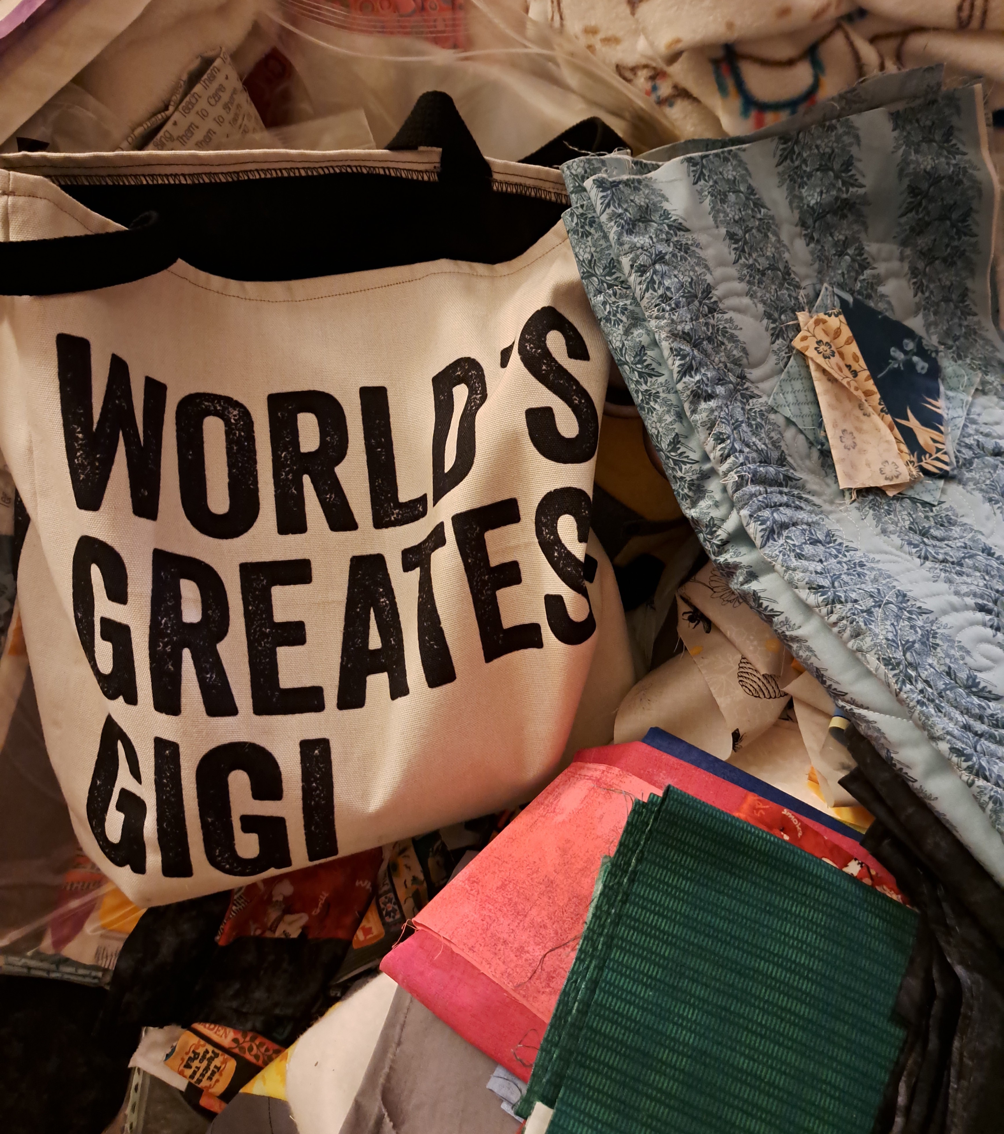 I won’t bore you with before and after photos, just in progress. Yes, a pile of paperwork and magazines. Yes, a box of clothes and suitcase full of old purses to give away. A stack of fabric that needs to be folded and put away (One of my favorite bags to carry my projects….I’m a GiGi and loving it!) Oh the bread, see the bonus tip below! <grin>