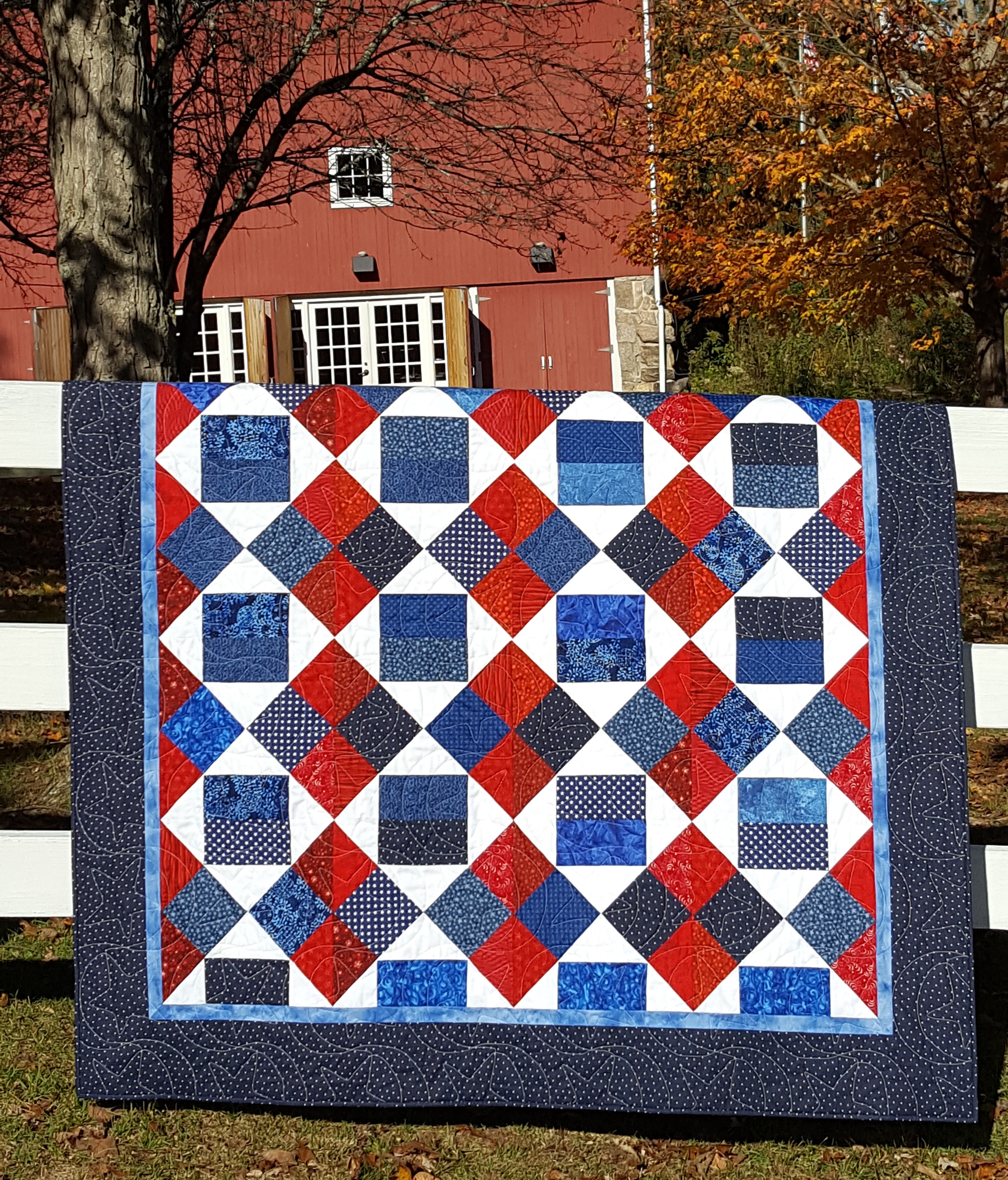 Tip 2 is a simple change of color can also give a different look. See Mary’s quilt side by side with my original R-W-B (Red-White-Blue) Boise quilt shown below.