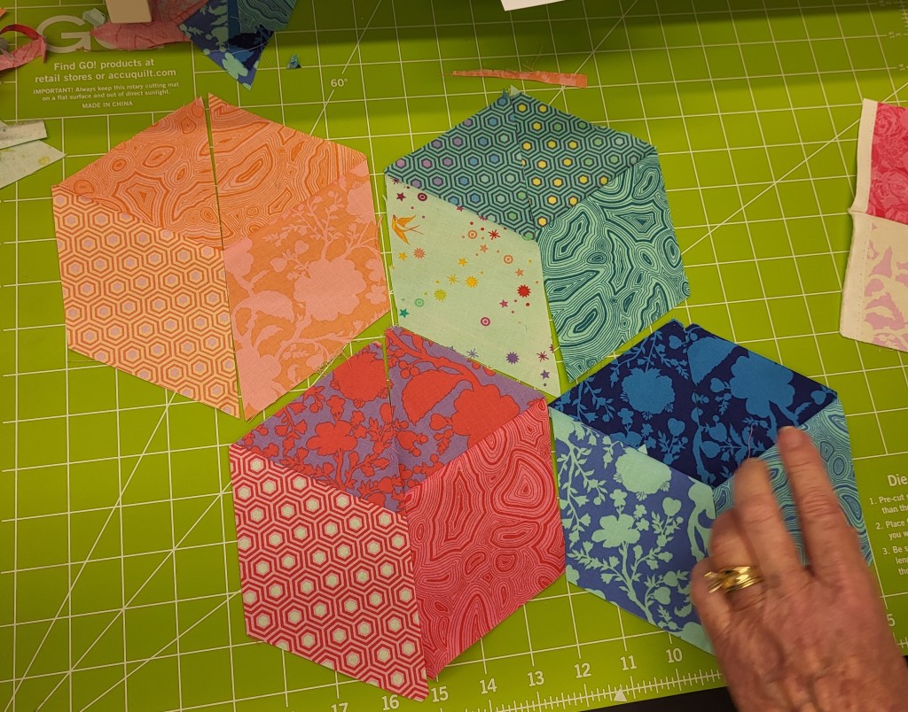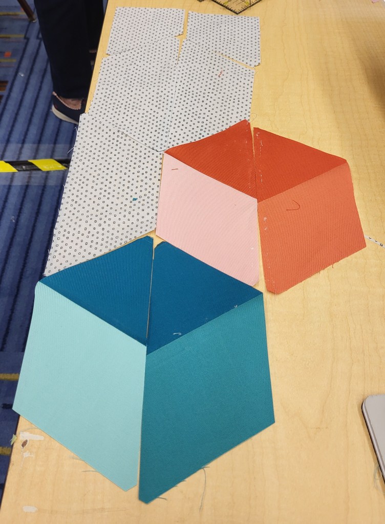 An amazing time happened in Daytona Beach! I’m so VERY PROUD of all my students. Their Flower Gardens began to grow! Their Baby Blocks were stacked and Done by Three projects got under way! The rotary cutters and sewing machine were humming!