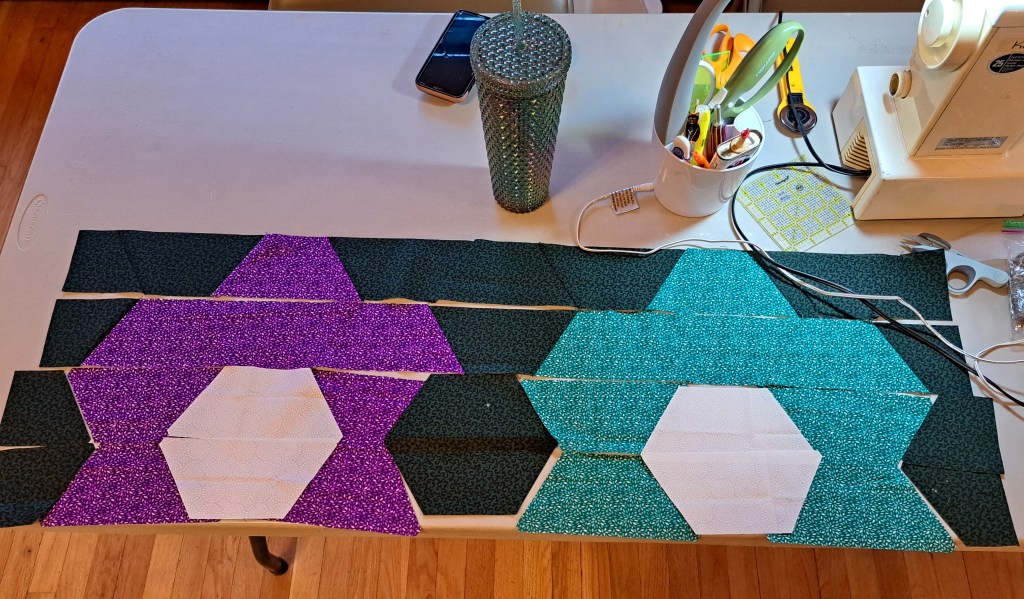 Thank you to Herring Run Quilt Guild for a great afternoon workshop and lecture beforehand. The workshop was the Hexie Flower Garden quilt. I have photos to share! I got 8 of the 10 results for the short three hours we met for the workshop. A lot was done!! Great starts with getting a couple rows sewn in class!!