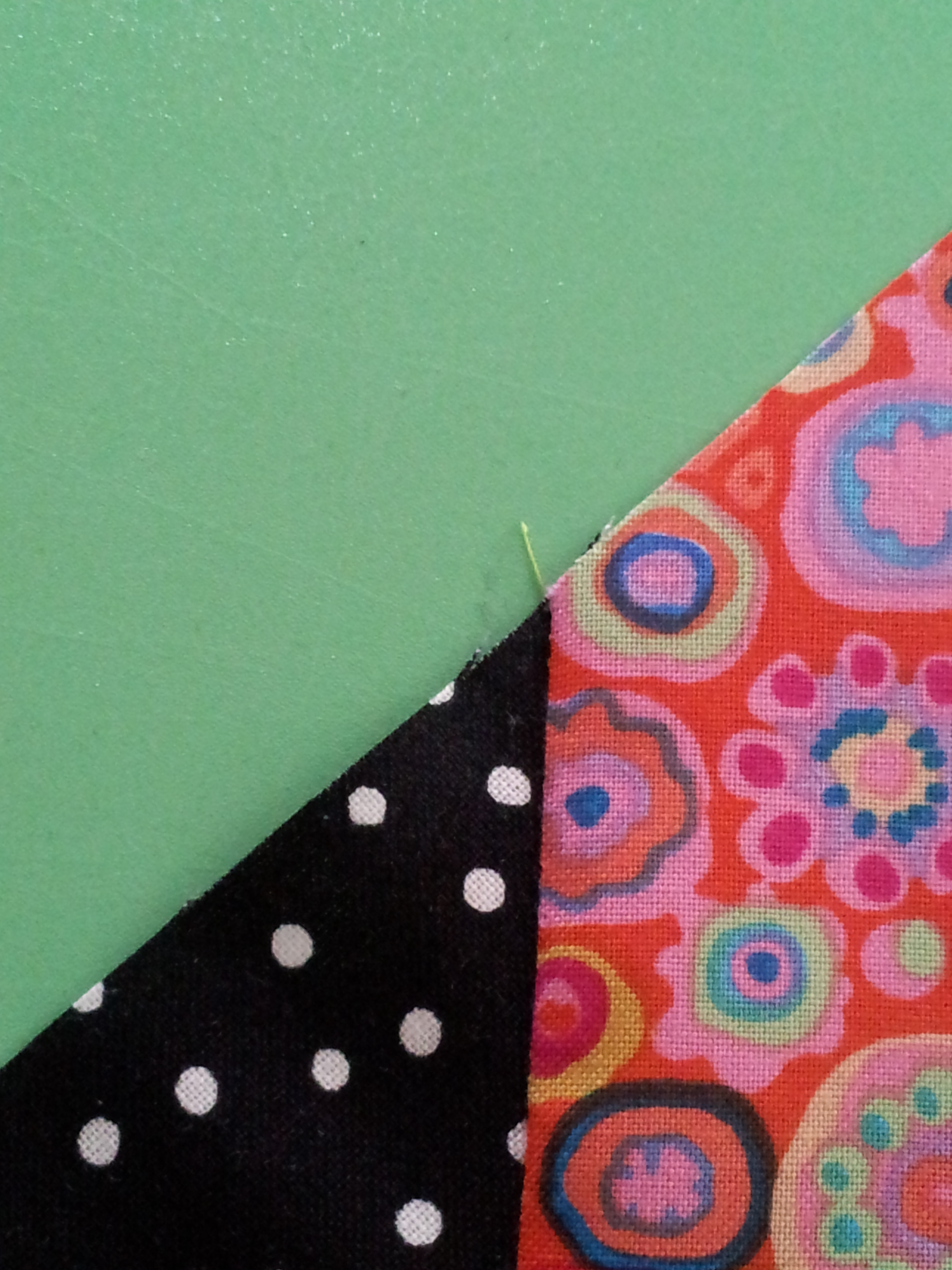 An AH HA moment happened with marking the sewing line when sewing triangles to a straight edge. I love those moments in class!! See the steps below. They decided it was well worth the time to make a 1/4″ line to get everything lined up correctly. YAY!