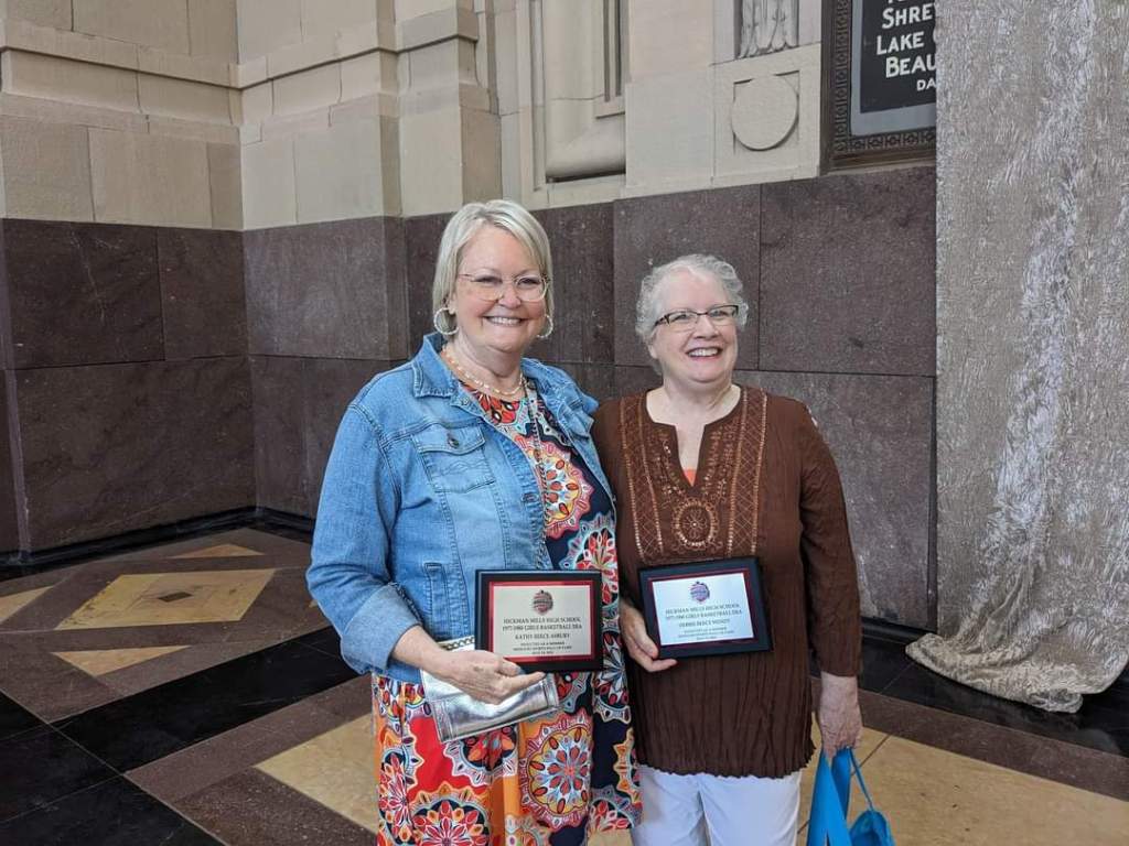 First…HONORS…I got to be a part of an amazing weekend by being inducted into the Missouri Sports Hall of Fame. Yes, really!! My high school, Hickman Mills High School in Kansas City, Missouri had an amazing girl’s sports program. I was the manager/trainer for basketball, volleyball and track. Our HMHS girl’s basketball teams were outstanding. From 1977-1980 the girls won 3 state titles in 4 years. Their record was 105 – 10!!! The first year after the passing of Title IX our girl’s sports programs were a powerhouse of talent. Our mascot was the Cougars and we quickly became Cougar Sisters. These girls were my friends on and off the court! My very own sister, Kathy, was the statistician for basketball besides running track.(she is pictured below with me!) The Missouri Sports Hall of Fame recognized our basketball program and I got to attend the enshrinement ceremony this past weekend in Kansas City! We were well represented with 30 of our teammates and coaches. Plus parents, family, classmates and fans. I believe we had over 130 in attendance!!! I’ll put some photos below! I did some quick math and I taped over 1000 ankles during the 2 years I was the manager/trainer for the girls!