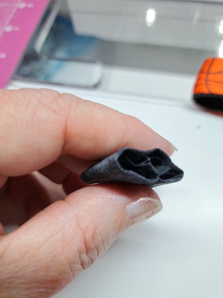 3 – Make a “sleeve” from cotton fabric. I folded a 2 1/2″ wide strip in thirds and stitched a seam making it wide enough to slide over the end loop. Position the sleeve over the zigzag join.