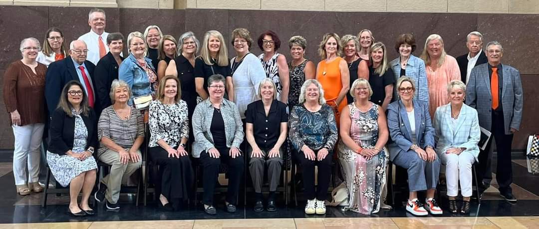 First…HONORS…I got to be a part of an amazing weekend by being inducted into the Missouri Sports Hall of Fame. Yes, really!! My high school, Hickman Mills High School in Kansas City, Missouri had an amazing girl’s sports program. I was the manager/trainer for basketball, volleyball and track. Our HMHS girl’s basketball teams were outstanding. From 1977-1980 the girls won 3 state titles in 4 years. Their record was 105 – 10!!! The first year after the passing of Title IX our girl’s sports programs were a powerhouse of talent. Our mascot was the Cougars and we quickly became Cougar Sisters. These girls were my friends on and off the court! My very own sister, Kathy, was the statistician for basketball besides running track.(she is pictured below with me!) The Missouri Sports Hall of Fame recognized our basketball program and I got to attend the enshrinement ceremony this past weekend in Kansas City! We were well represented with 30 of our teammates and coaches. Plus parents, family, classmates and fans. I believe we had over 130 in attendance!!! I’ll put some photos below! I did some quick math and I taped over 1000 ankles during the 2 years I was the manager/trainer for the girls!