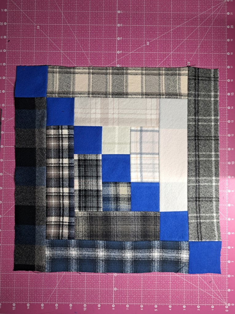No need to worry! YOU have the power to make it work in your favor….whichever direction YOU want to take it. The block below is a good example of how all those “mediums” are used for the “light” side of the Log Cabin block. Does it work? Sure!! Could there be alternatives? SURE. You get to decide!