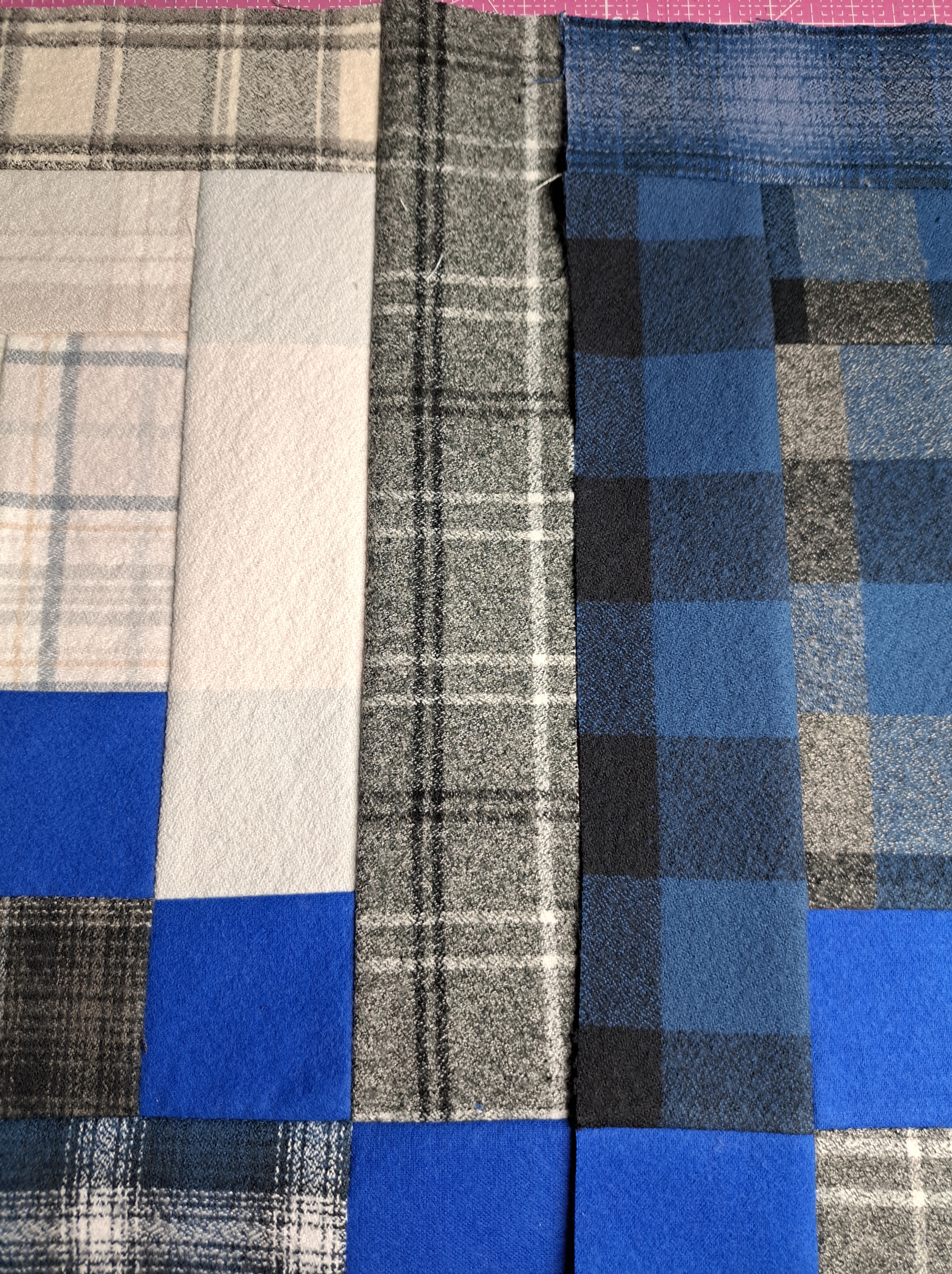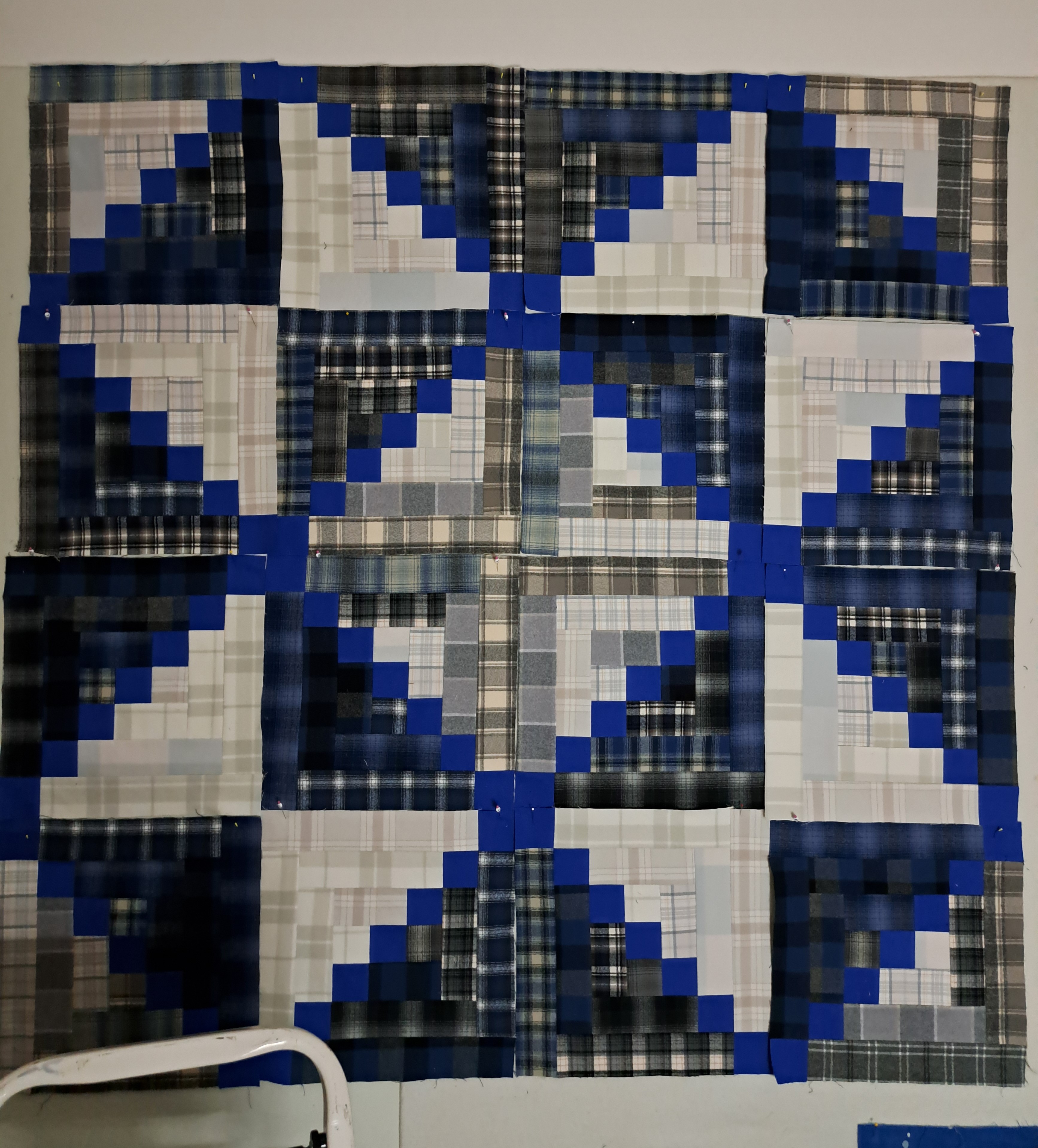 Have you had trouble working with contrast in a quilt? It is easy to have color and contrast mix things up and around. A color like gray can get placed next to white and look very dark. But that same gray placed next to navy blue can look light. It is FUN to play and “make” colors work to your advantage. Take the Log Cabin blocks below…. The gray used on the “light” side of the Log Cabin has a medium value. Yet when placed next to a navy/royal blue in another block, it looks lighter. Yowza!!