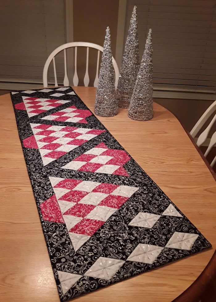Winter Tree-Land Table Runer is a great way to use 2 1/2″ strips and Hex-a-ma-jig Jr. template. I’m in love with the snowflake corners!