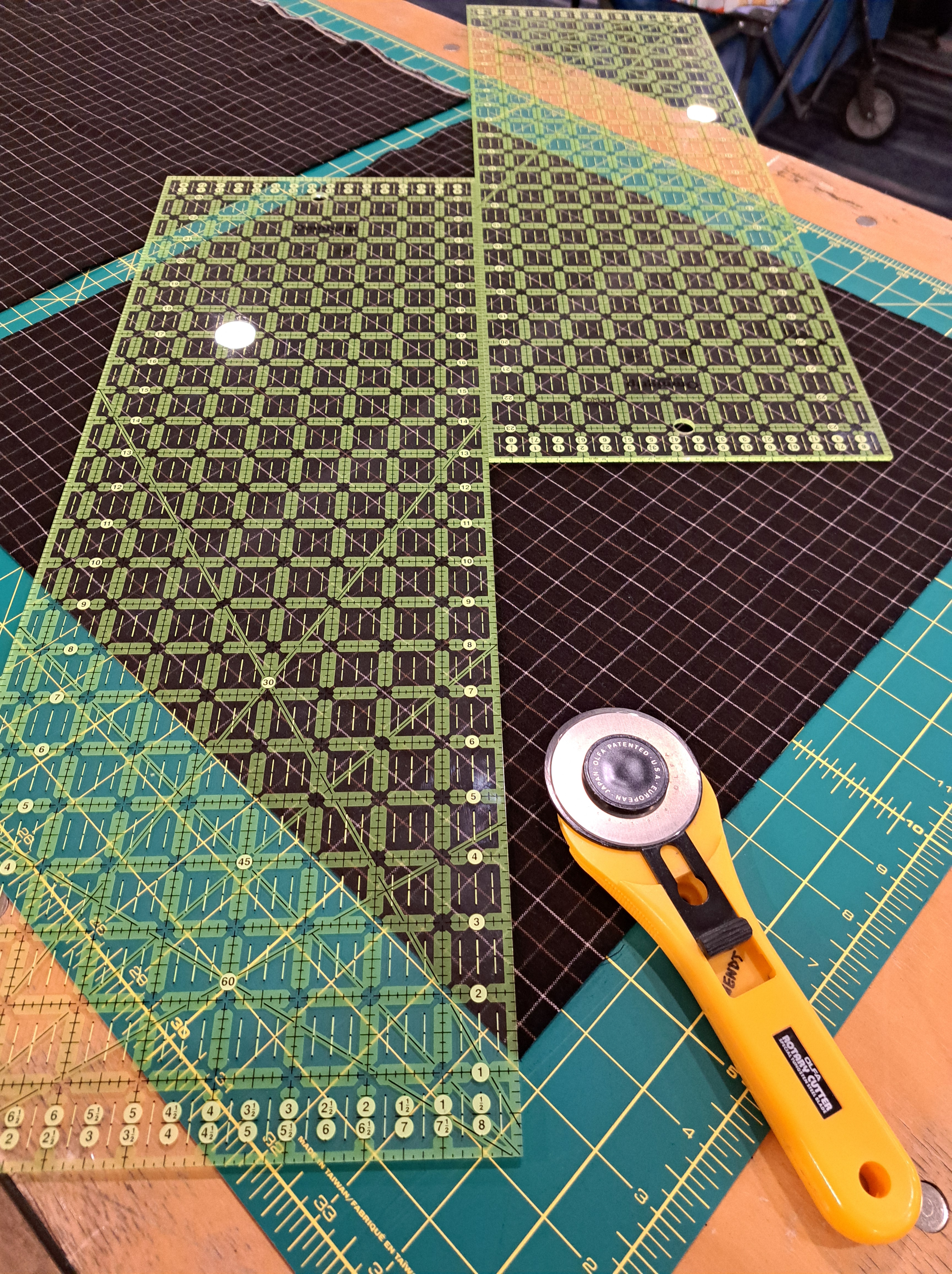 #2 – Use 2 rulers to cut large side triangles. This helps to span the length of the cut!