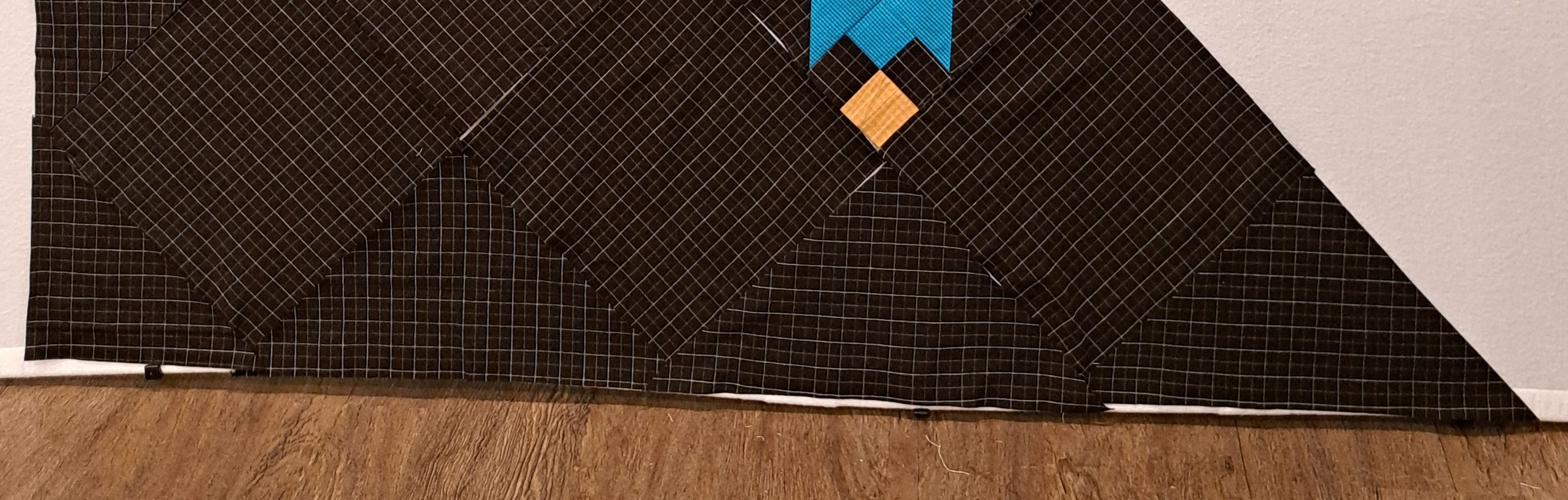 This is where the side triangles go in this quilt. The complete the outer edges when putting blocks on point. I’m filling in the bottom of this quilt in the photo below. The bottom left corner is a half square.