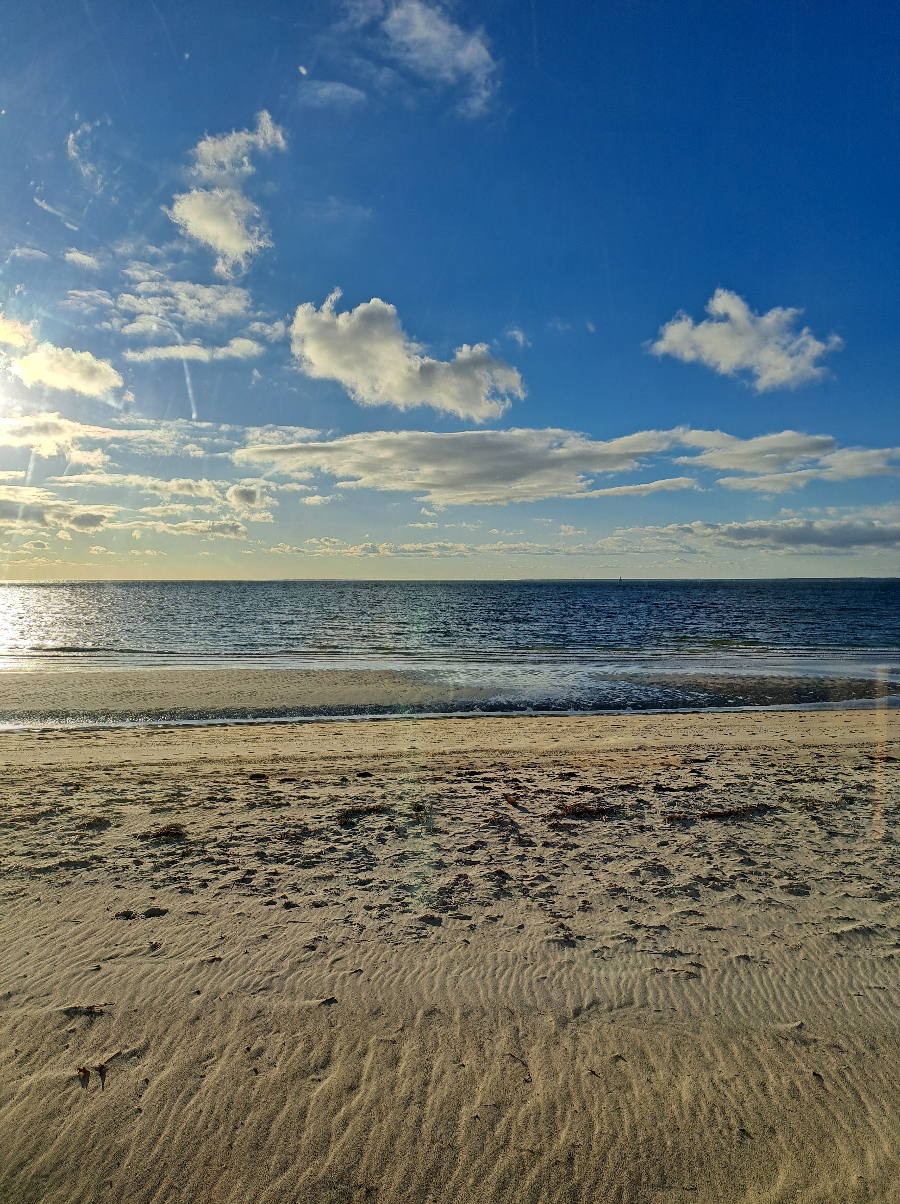 I attended my guild’s (Thimble Pleasures) Getaway last weekend. It was three and a half days of sewing fun!! We go to a hotel on “the Cape” (N. Falmouth, Cape Cod, MA) It has a huge ballroom of which we each get an 8 foot table to spread out! I have been there before with two different guilds. I love the view from the restaurant, makes for an even better attitude.