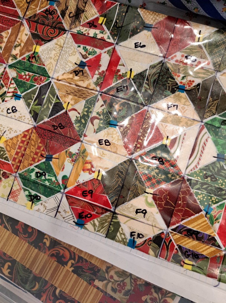 #1 – Pre-cut and organize! Shari used cardstock to layer each block in her quilt and did loads of labeling to keep things organized!