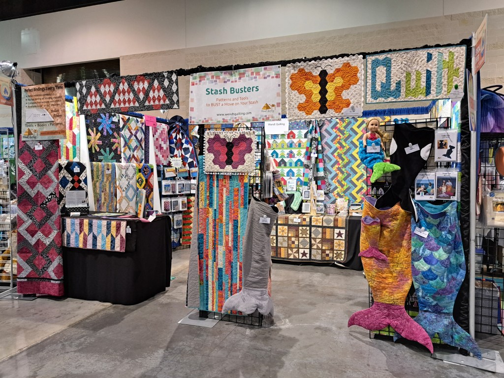 Time always flies when teaching. I was so proud of all that was accomplished! When taking a class there were a few things that helped….First – bring the rotary cutter you are comfortable using. Second – always bring the basic supplies you sew with (pins, seam ripper, patience) and Third – we love our machine educators in the classroom. It is always a comfort to have immediate help when sewing on a new machine. Plus, the great deals the machine dealers offer at a show!